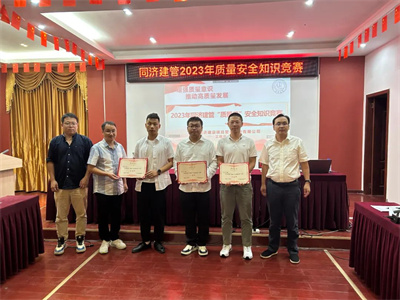 今年9月是全国第46个“质量月”,主题是“增强质量意识,推进高质量发展”。为贯彻落实全国“质量月”活动精神,营造“人人重视质量”的浓厚氛围,使质量安全的重要性深入到每位员工心中,在9月组织2023年“质量月”活动理论知识培训及现场实操演练的基础上,10月5日,同济建管举办2023年“质量月”安全知识竞赛,各部门、分公司及事业部员工组成12支队伍踊跃参加。