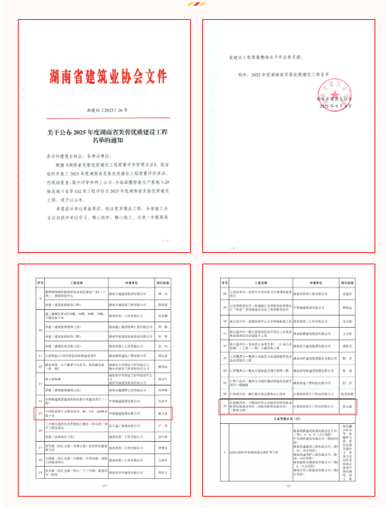 日前,湖南省建筑业协会印发《关于公布2025年度湖南省芙蓉优质建设工程名单的通知》(湘建协〔2025〕26号)。其中,由同济建管监理的中国铁建和平央著项目7#、8#、11#、12#楼及地下室,江西赣州市一于都县红色文化展览培训基地及配套设施建设项目(胜利大桥)项目双双上榜,斩获湖南省芙蓉优质建设工程荣誉称号。