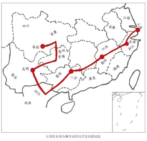 台湾校友徐为康手绘的同济迁徙路线图